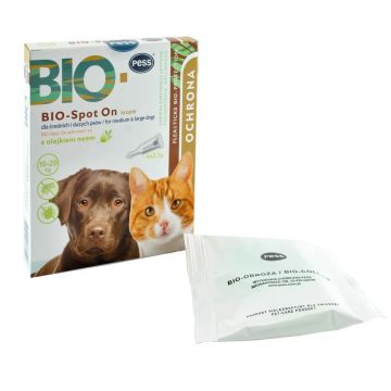 Pipeta Antiparazitara Caini/ Pisici PESS Bio-Spot On cu Ulei de Neem, 4x1 g/ 10 kg