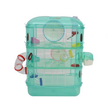 Această cușcă de păsări mare, cu acoperiș, este un adăpost ideal pentru păsările de companie. Păsările se pot bucura de un spațiu amplu și de 4 stinghii din lemn unde pot zbura și se pot juca în siguranță. Această colivie de calitate superioară este formată dintr-un grilaj de plasă din oțel cu spații foarte înguste de jur împrejur, pentru a preveni vătămările și accidentele neprevăzute. Construcția grilajului vă permite să supravegheați păsările, iar ele se pot bucura de priveliște și de o cantitate suficientă de aer proaspăt. Această colivie durabilă și rezistentă este dotată cu un cadru de oțel de înaltă calitate. O tăviță extensibilă în partea de jos a coliviei o face să fie extrem de ușor de curățat. Colivia include 1 tăviță pentru hrană și 1 dozator de apă și are și 4 rotițe, care facilitează mutarea sa. Culoare: Negru Material: Cadru și acoperiș din oțel + lemn + plastic Dimensiuni: 66 x 66 x 155 cm (L x l x î) Cu 1 tăviță pentru hrană și 1 dozator de apă Cu 4 stinghii din lemn